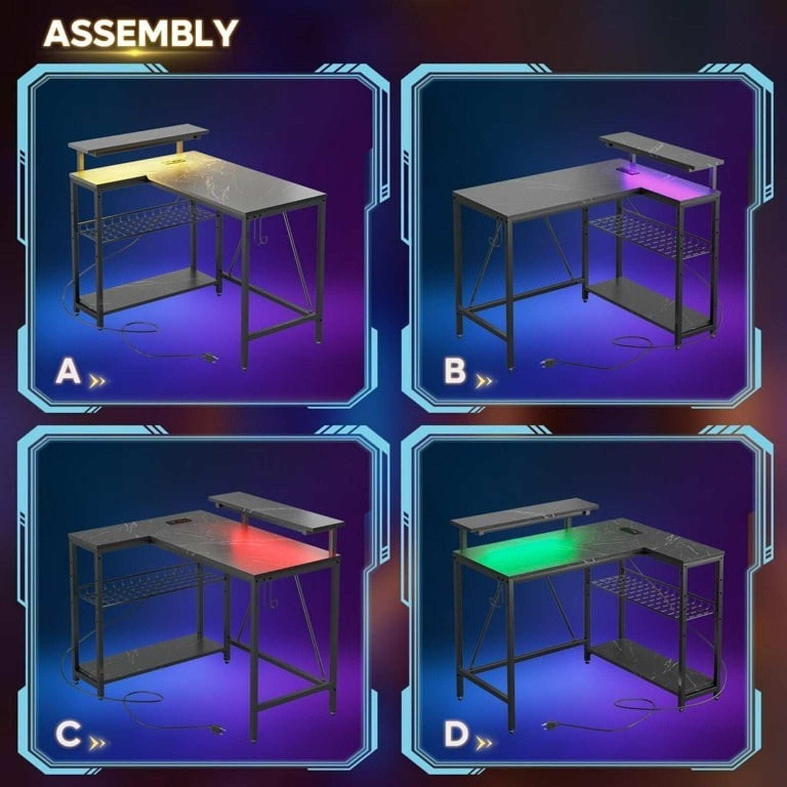 The Bestier 42 Inch Computer Desk in Marble Black is a stylish and functional addition to any home office. This contemporary/modern desk features a marbled pattern on the tabletop, with a sleek black color that adds a touch of sophistication. It includes shelves for convenient storage and a sturdy metal handle for easy customization. With dimensions of 42 inches in length and 24 inches in width, this desk offers plenty of space for a comfortable work environment. Perfect for those looking to upgrade their workspace with a touch of elegance and functionality.