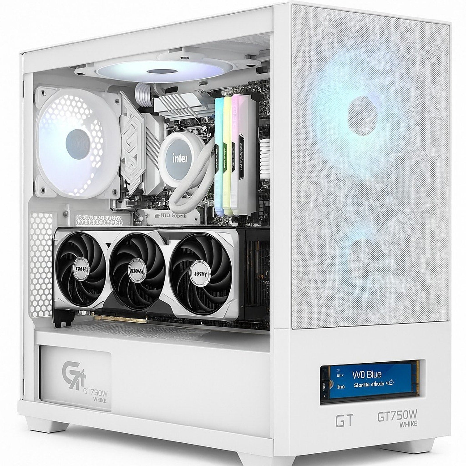 The White RGB DIY PC Bundle features a high-performance Intel Ultra 5 225F desktop processor paired with an RTX 5060 GPU, 32GB DDR5 RAM, and a 1TB NVMe SSD. This bundle also includes a power supply unit, wireless connectivity with WiFi 7, and a 1TB SD card for added storage options. Designed for custom configurations, this bundle offers a complete system for DIY enthusiasts looking to build a powerful and visually appealing PC with Intel components.